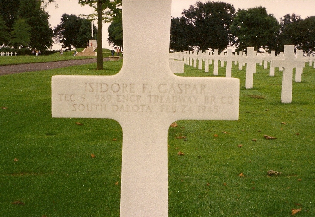 T/5 Isidore Gaspar headstone at WWII memorial cemetery.