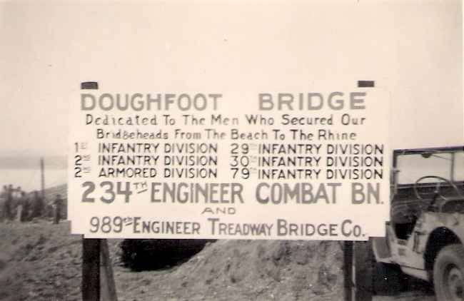 Doughfoot Bridge, Dedicated to the men who secured our bridgeheads from the beach to the Rhine.